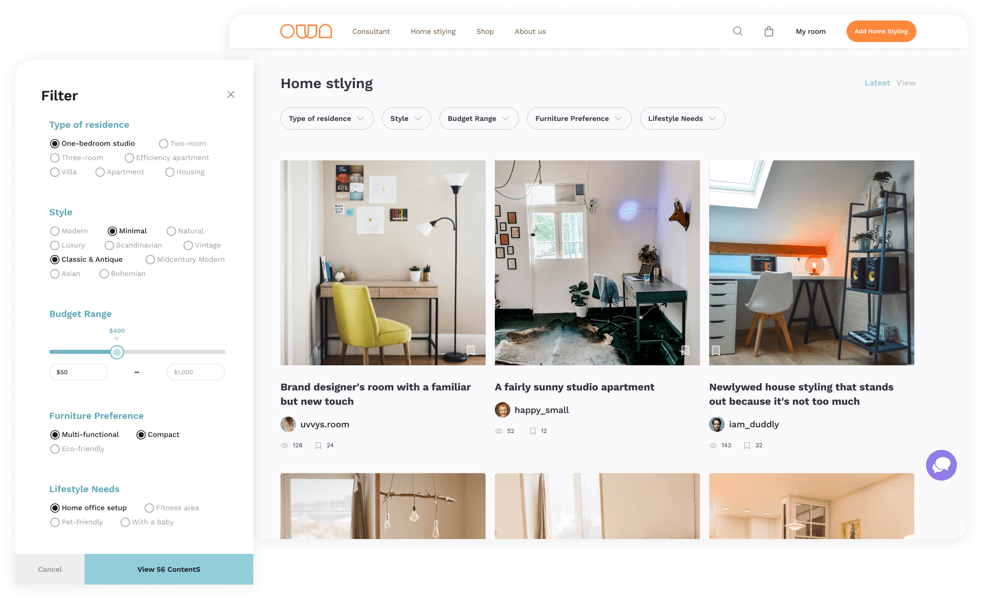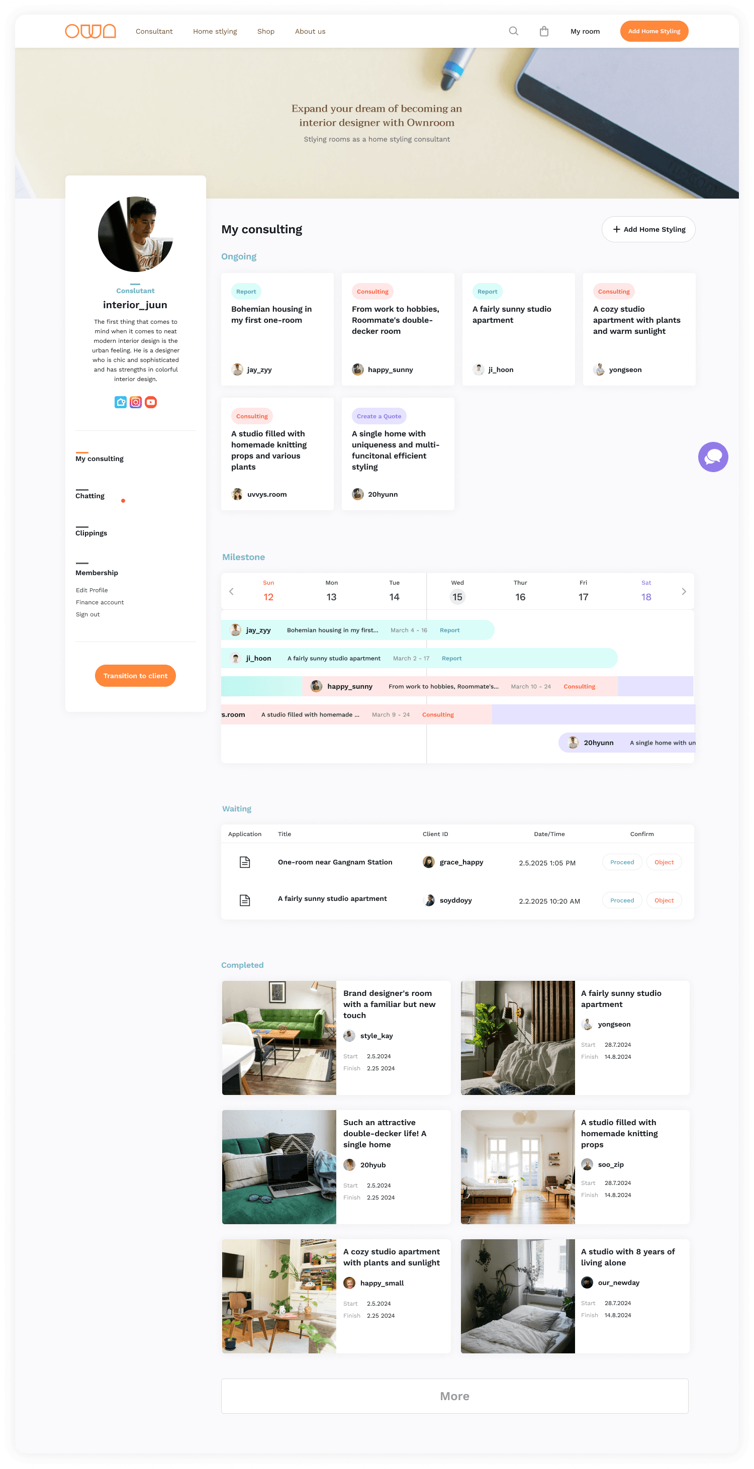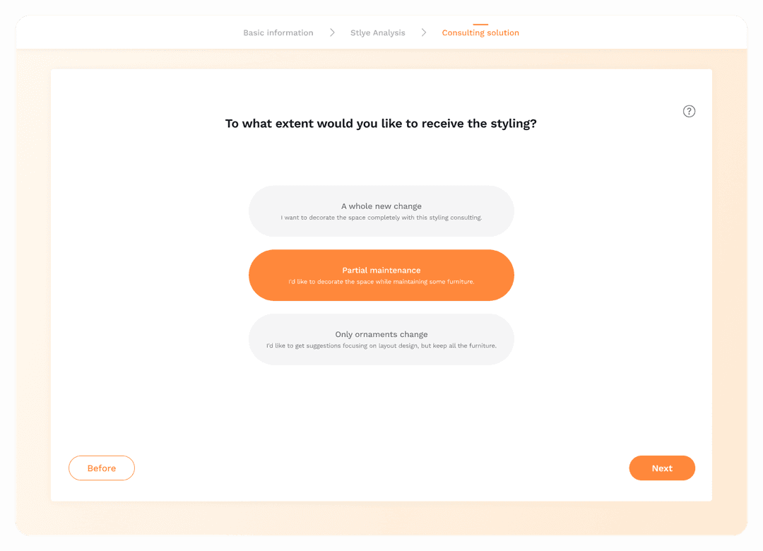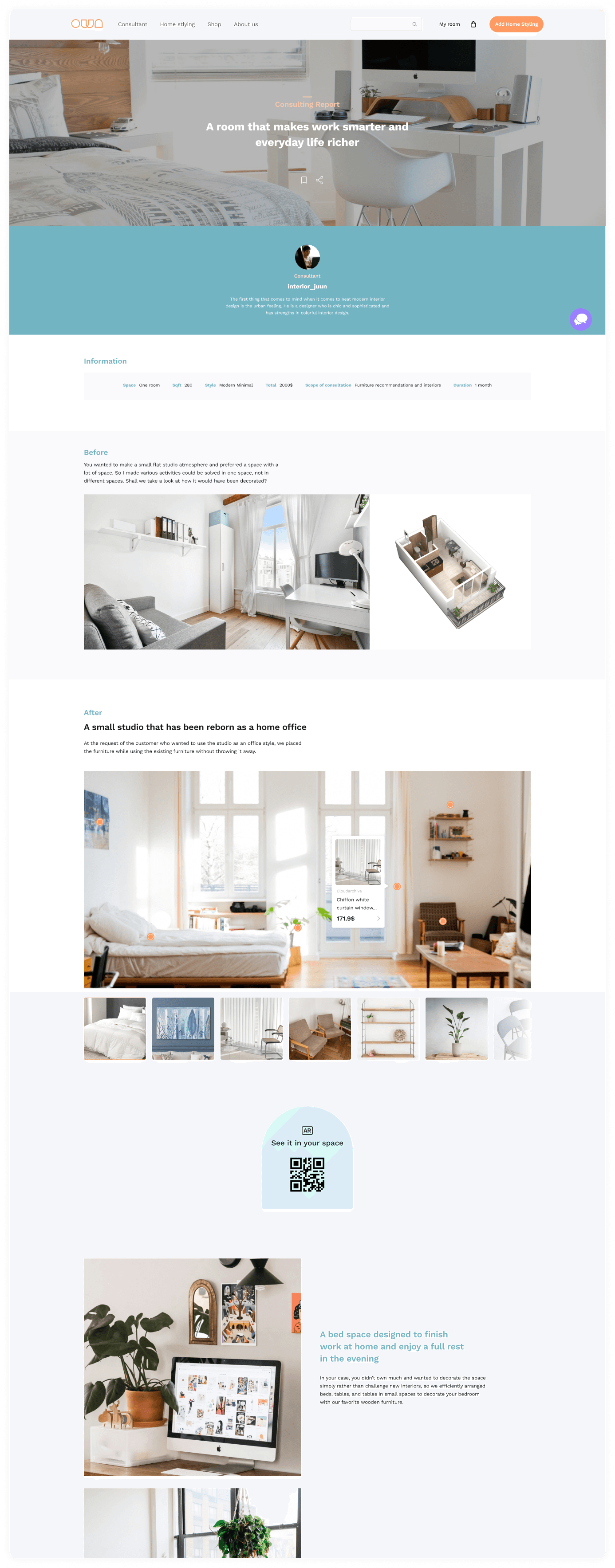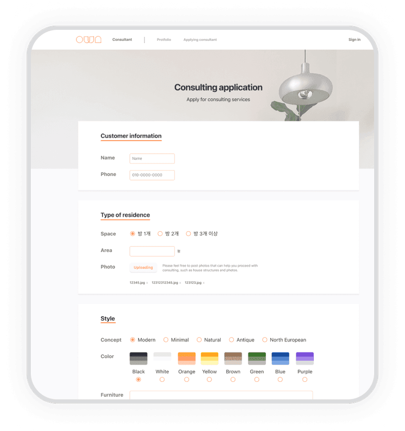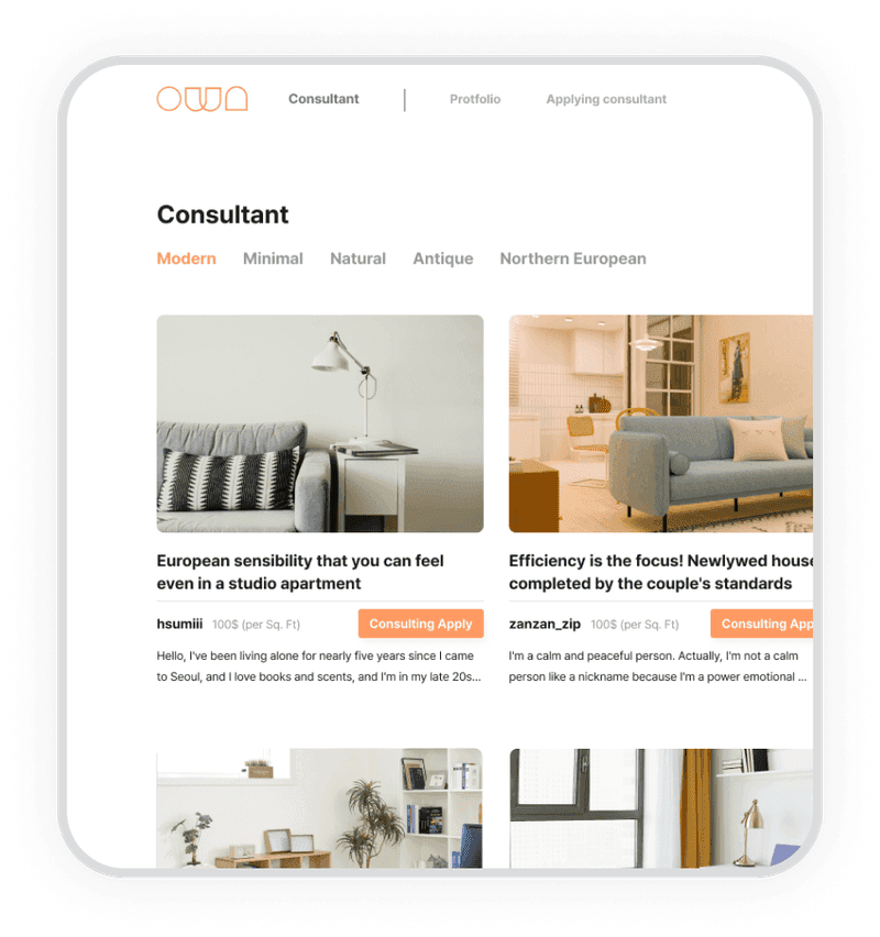 A home styling consulting platform, originally created by one product manager, two designers, and three developers, I was one of product designers. It was launched on Feb 2022, achieving a goal to successfully deliver within five months.