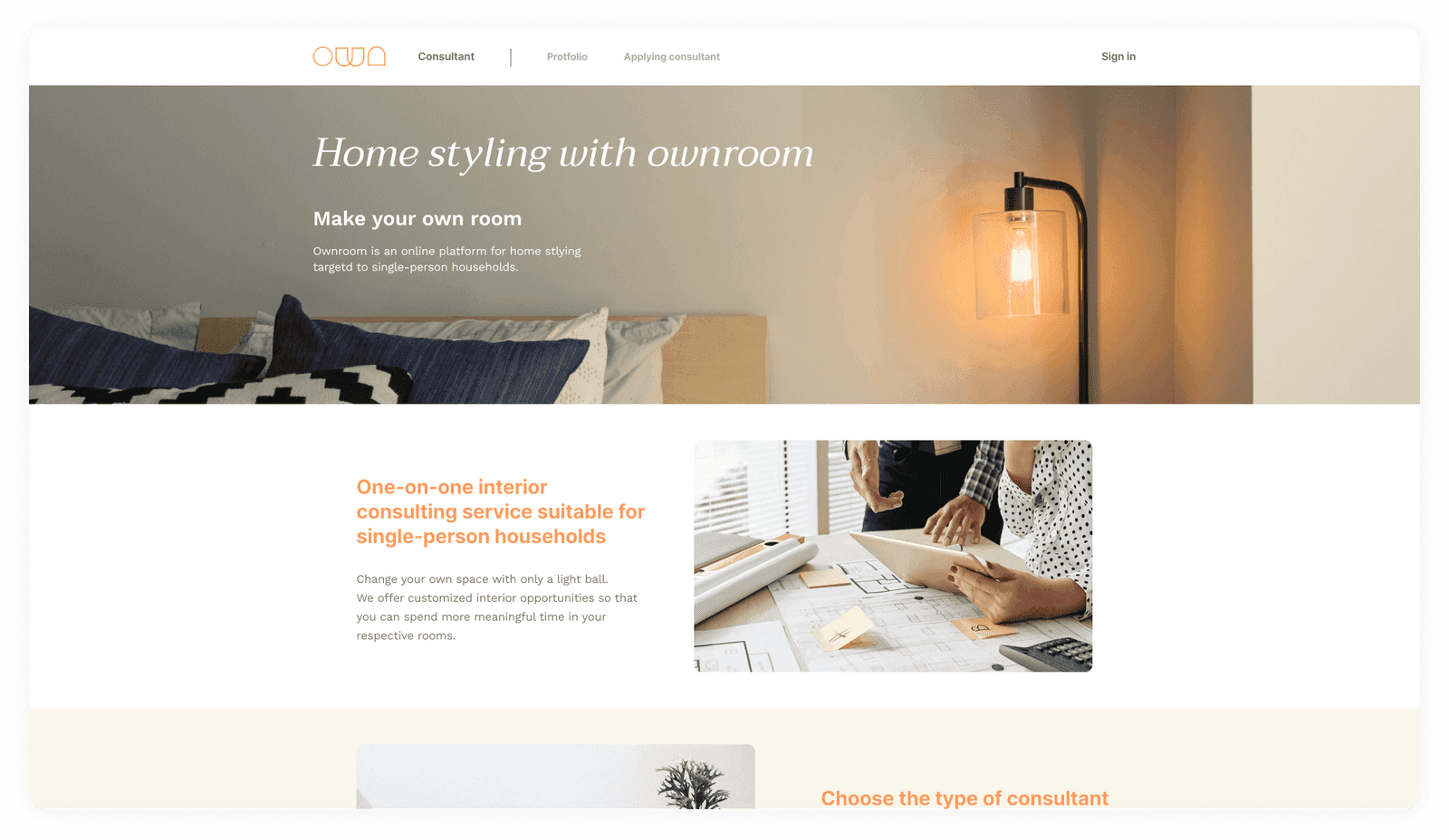 The Ownroom Orange expresses the warmth of the personalized space. In the redesign process, two point colors were added to not only create warmth but also vivid mood.