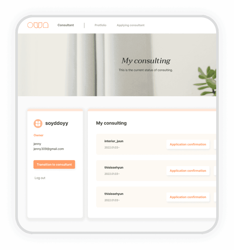 ✓ The My Page interface design of client's and that of consultant's are similar, make people feel conjungled.